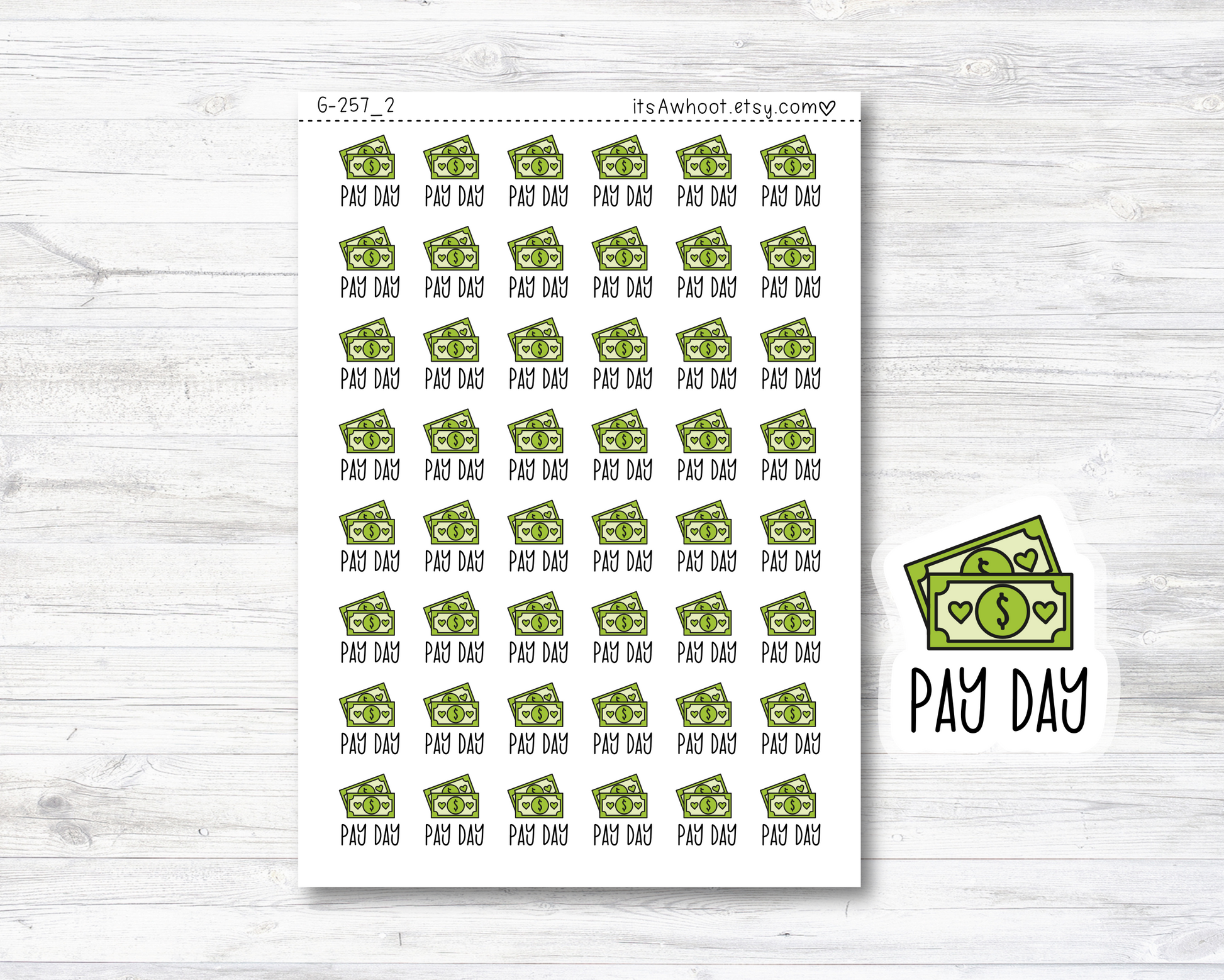 Pay Day Stickers, Pay Day with Money Icon Planner Stickers, Doodle Pay Day Stickers (G257_2)